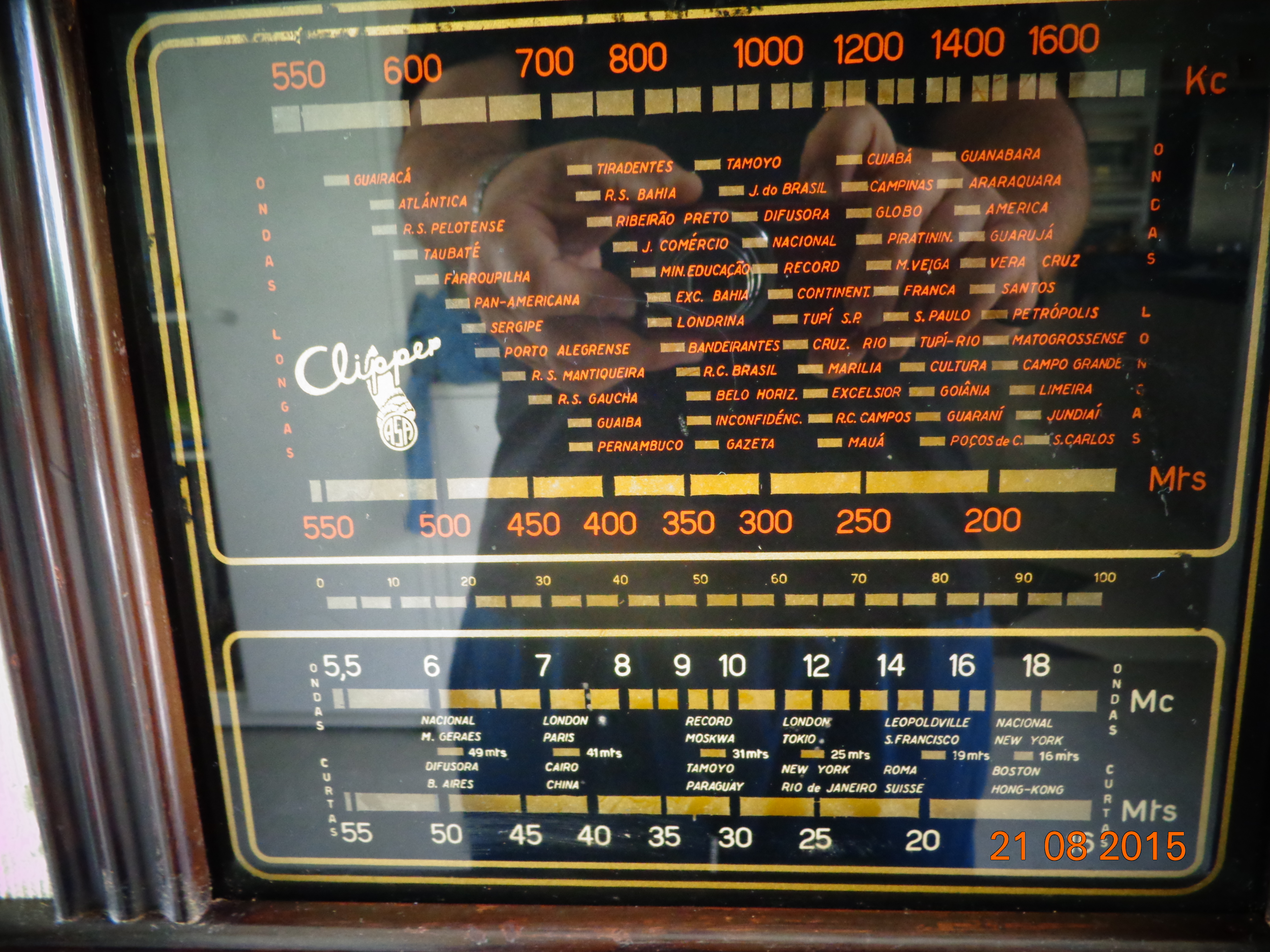 Rádios de épocas distintas e diferentes marcas, apenas para citar algumas: Bosch, Cliper, Emerson, Empire, Hermes, Invictus, Mullard, Schaub.